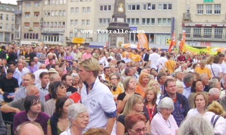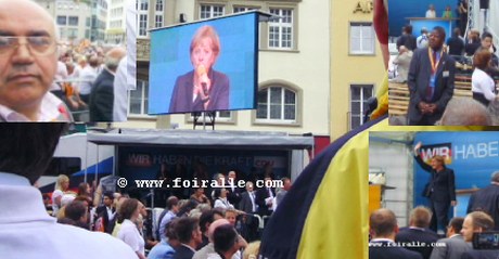 Toutes les préparations et la mise ens cène le choix de la musique musique étrangère des Rollings stones et Tina Turner qui fait déchainés les émotiosn des allemands qui se sont regroue dans une zone réservée exclusives aux membres et invités de CDU ce qui est desagréable pour les passants. Cette foi-religion est sans frontière qui touche le monde entier, partout où l'homme existe quoi que ce soit son ethnie et nationalité, il devient chrétien á travers le baptême et qui entre en communion de foi avec les autres chrétiens