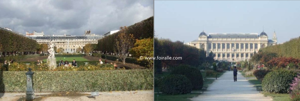 Paris en automne les Palais et les jardins, l'art, lde design et la sculpture . à gauche Palais Royal et à droite Palais jardind es plantes
