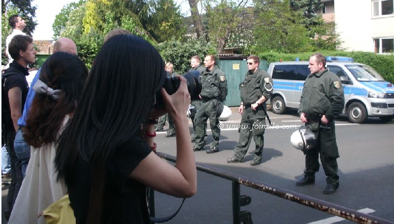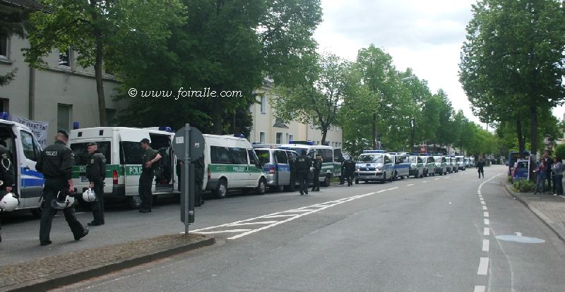 En quelques minutes tout est disparu - plötzlich alles is weg . L'incroyable système allemand .... Je me demande comme ceci se passe préciosément Bonn Beuel dans la ville où il y a eu des victimes allemandes portées en déportations à cause de leur religion. Quelle démocratie et liebrté en Allemagne donnent encore le droit à la manifestation et la police locale accepte la demande de ce genre en refusant la manifestation traditionnelle des jeunes d'une Gewerkschaft ? Des millions euro ont coûté ce déploiment comme si rien n#est passé á la fin. C'est show demonstration de forces et de savoir organisé!