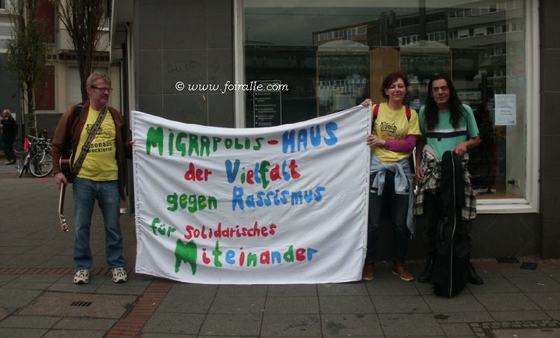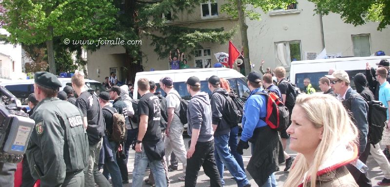Le matin vers 9h se ressemblent les premiers manifestants- Mais une fille memebre des jeunes d'une association qui ne m'a plu pas pour son agressivité de voire un visage inconnu (journaliste allemand) "Fremde Feinde Fern halten ". C'est un problème allemand permanent +aussi parmis la jeunesse de 21e siècle. J'ai bien voulu donner mon appui médiatique |