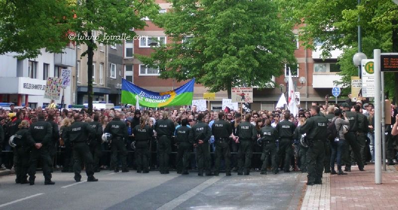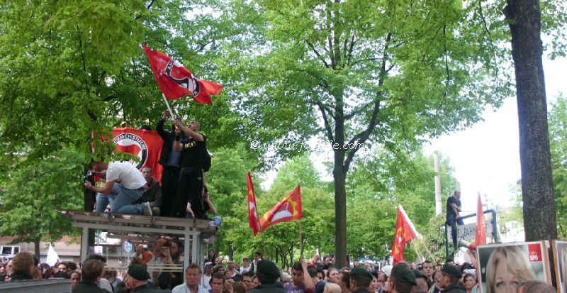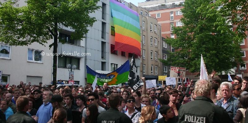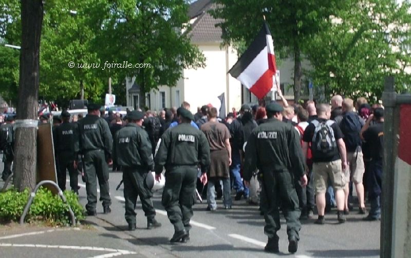 les voilá en première ligne face aux extrémistes allemands avec les autres groupes et associations de protestations contre.