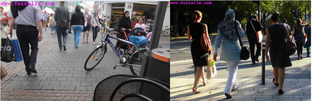 Une présence forte visuelle dans les lieux publics en Allemagne qui monte en haut de jour en jour pour monter en haut sur les médias et les débats médiatiques et politiques . Lá où un projet urbaniste a été fait lá je voie des musulmans et nouvelles génération avec les vêtements de différences.