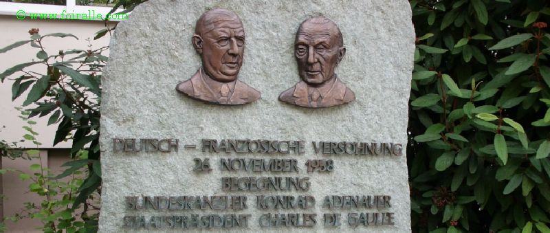 À Bad Kreuznach une première après la seconde guerre mondiale un sommet franco-allemand de réconciliation a eu lieu en 1958 entre le président le Général Charles de Gaulle et le chancelier Konrad Adenauer (Bad Kreuznach à l'entrée de Kupark hotel) Fin octobre 1984, une nouvelle fois le 44e sommet franco-allemand a eu lieu à Bad Kreuznach le président français François Mitterrand et le chancelier allemand Helmut Kohl.