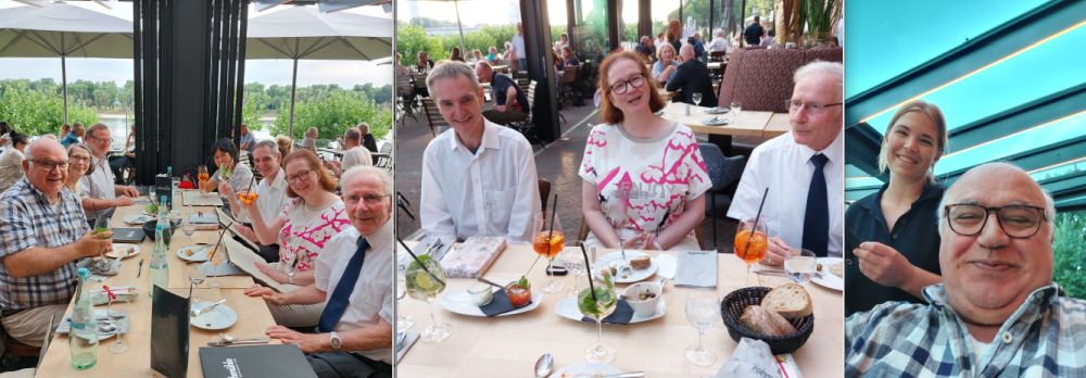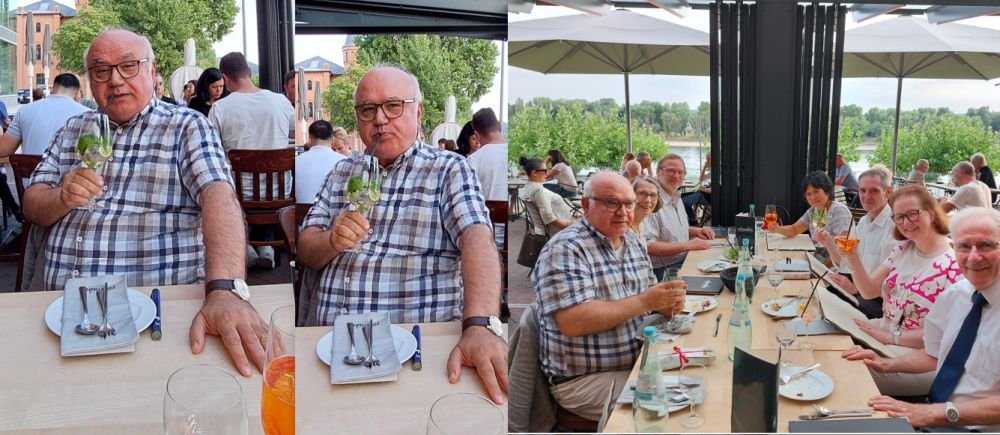 Mon Anniversaire au bord du Rhin avec "une belle ambiance romantique" avec ma femme et mes amis dans un restaurant au bord du Rhin avec une belle ambiance d'amour, d'amitié et de services Le 1 aout c'est mon anniversaire, voilà il fait très chaud été 2022 mais ce jour-là heureusement il faisait moins chaud , on a pensé de fêter amon anniversaire avec des amis les plus proches dont on est en contact depuis des décénies. Alors ma femme à envoyer des e-mail certains ont répondu à notre invitation et certains d'autres absents en question de voyage