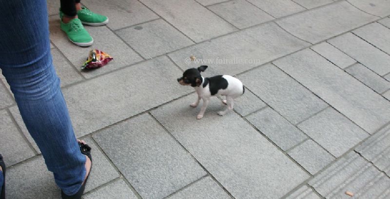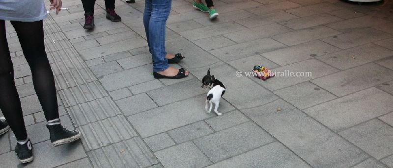 Le petit chien à Duesseldorf et la mode des chuassures et jeans des filles