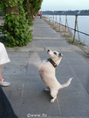 Un chien qui joue et fait des gestes acrobatiques avec sa propriétaire et les 4 femmes ! avec intelligence Il va et vient dans un défilé comme un pacha parmi les Ha... et pourtant il y avait un homme qui faisait ces photos avec son appreil numérique