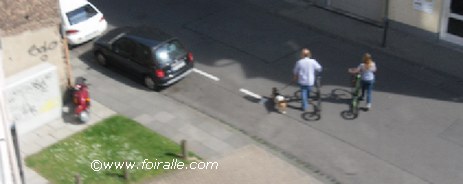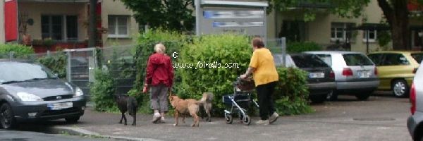 La femme un bon matin dans une rue de Francfort "Ja Guten Morgen Bonjoiur aux chiens" heureusement que ma femme me dit chaque matin "buongiorno amore" >>>>>