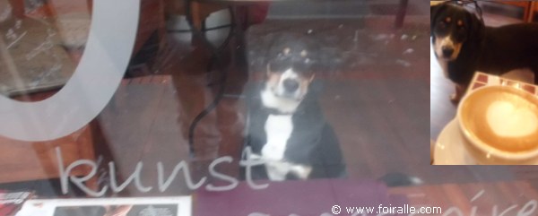 3 février 2011 La gentillesse sociale de ce chien m'a poussé à prendre un cappuccino dans un petit café artistique et culturel >>>>