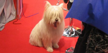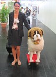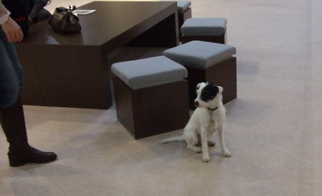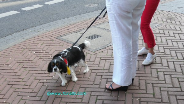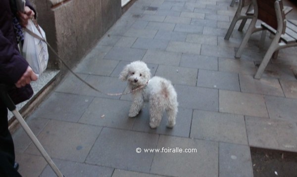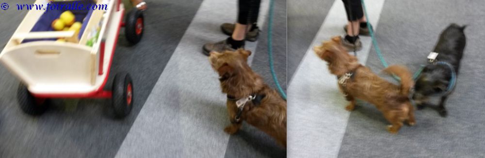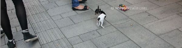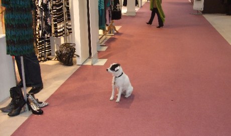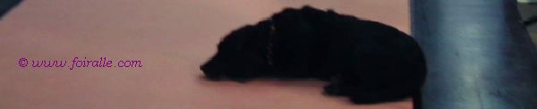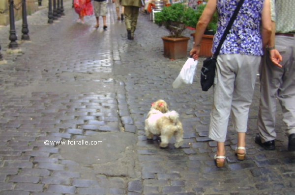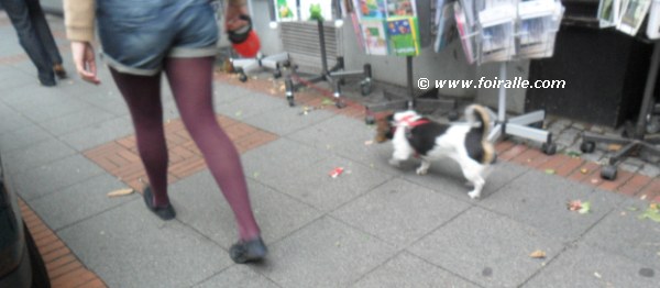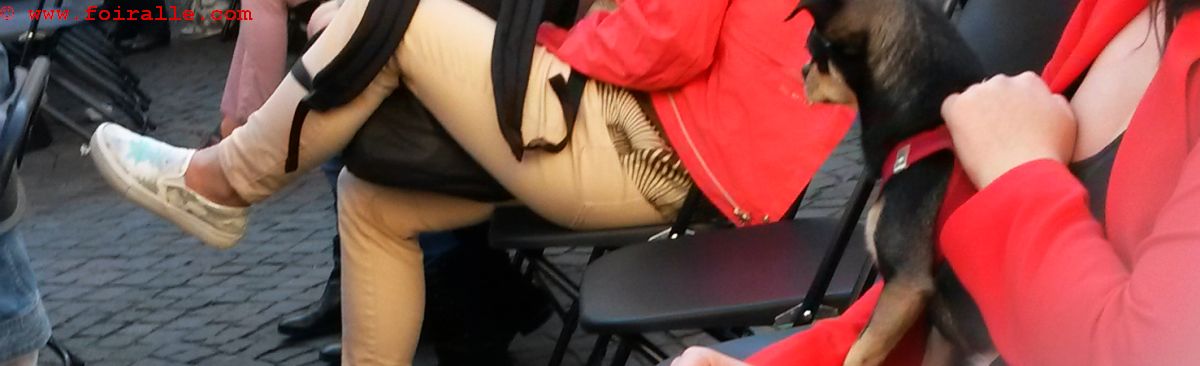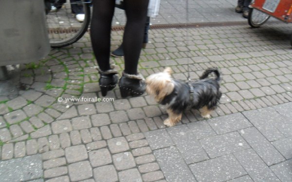 un Guiness mondial ! ? ou plutôt le plus petit chien au monde qui regarde le défile des chaussures et collants des filles à Duesseldorf >>>>>