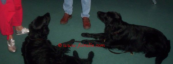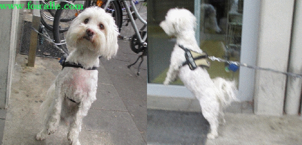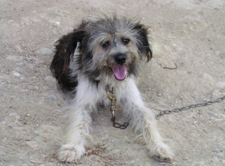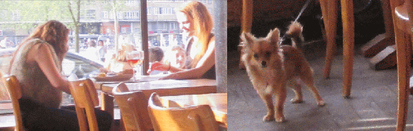 Le chien qui cherche le contact avec moi, de jouer, ennuyé par la patronne qui bavarde tout le temps "bla bla bla" >>>>
