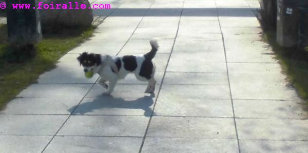 Klein Hund in Frankfurt-Le petit chien de Francfort dan le jardin d'un musée et jeu avec une balle de tennis >>>>