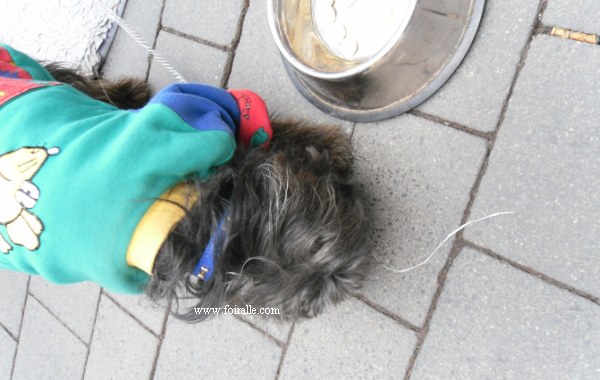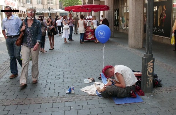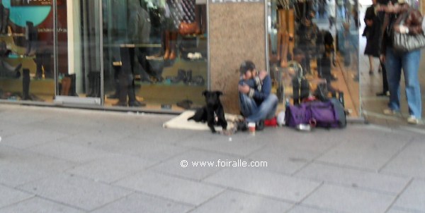 Königsallee de Düsseldorf, "le chemin de la croix de qui ? du clochard ou du chien sur (boulevard du shopping luxe) ou la pauvreté des gens dans les rues en Allemagne >>>>>