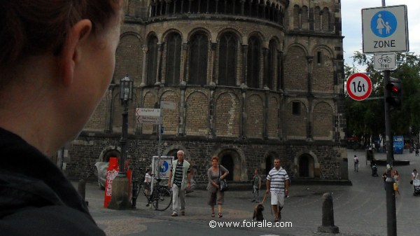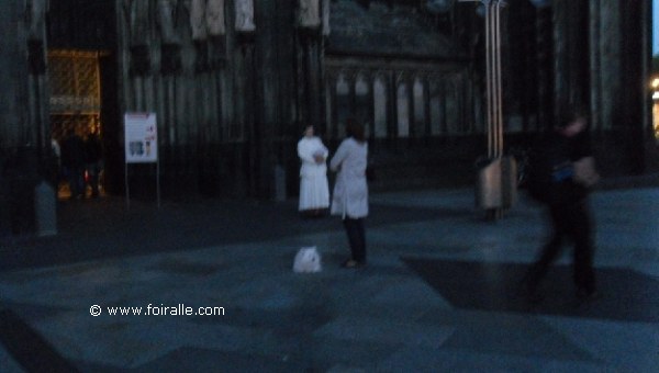 After photokina devant la cathédrale de Cologne, une femme, un chien, une camera