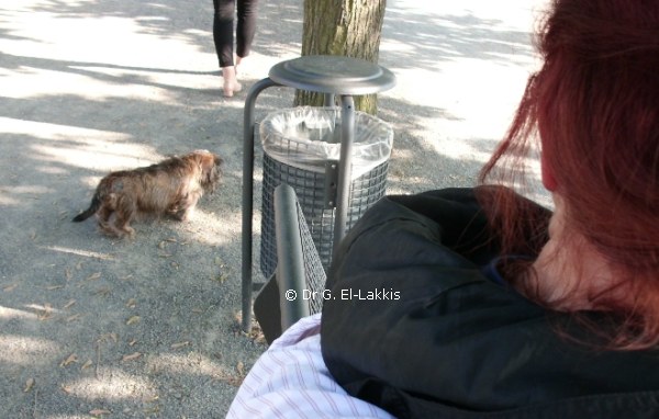 Le sommet européen et africain est fini, voilá le chien et sa propriétaire dans une promenade dans le parc de Bruxelles, il cherche le code des autres chiens