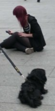 chien noir clochard en compagnie d'un jeune homme city finance Francfort !