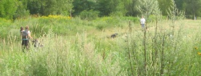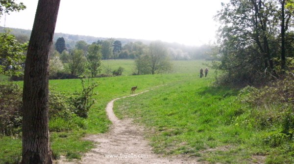 Promenade dans la campagne et un chine en compagnie de deux femmes