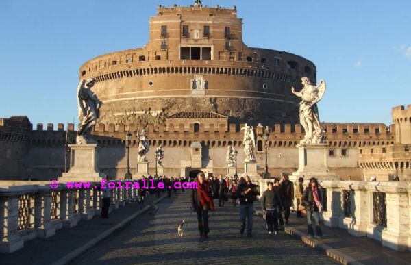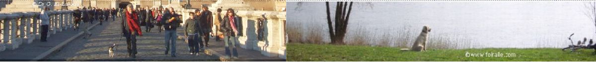 La promenade du chien sur le Pont de Castel Saint'Angelo sur le Tibre à Rome non loin du Vatican >>>>