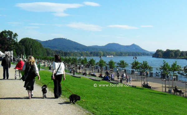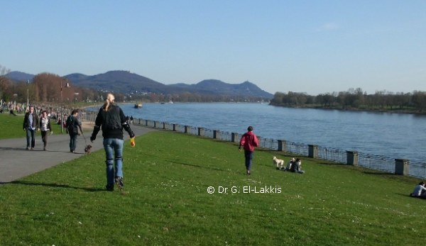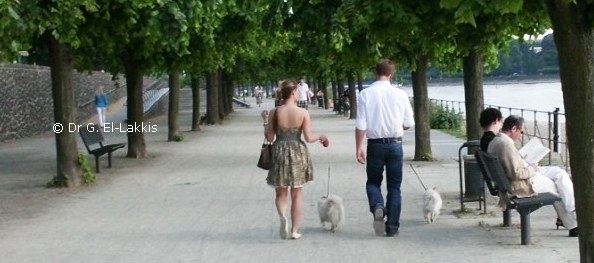 Printemps au Rhin Promenade parmi les chiens, Jour ensoleillé et les propriétaires sur le Rhin, Allemagne >>.....