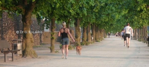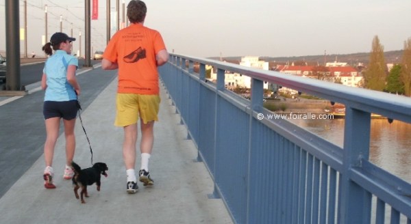 Stop ! hör mal auf - ich brauche kaka zu machen am Rhein. Le chien qui ne pouvait pas poursuivre le jogging de son propriétaire sur le Rhin