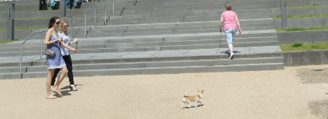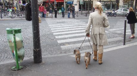Dans la ville on voit beaucoup de choses, même des chiens et des promeneur