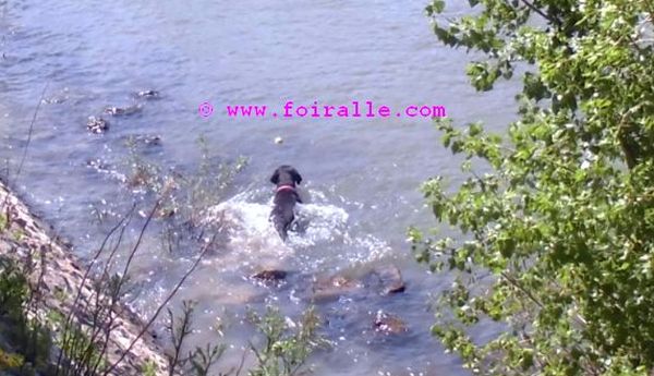 Des chiens sur le Rhin, celui qui boit des eaux du rhin et l'autre qui fait ses nécessites naturelles tout a côté du Rhin
