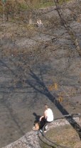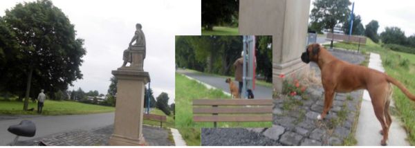 Rome, une balade avec le chien sur le Pont de Castel Sant'Angelo sur le Tibre, il marche avec l'histoire, l'autre chien se trouve au bord du Rhin, il est en rêve ou à la recherche d'une compagnie semblable pour jouer comme les autres êtres humains. Peut-être il pense au développement de l'histoire de comment la civilté des romains dans les pays de spays barbares les tribus germaniques !