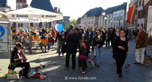 Impressions d'un beau spectacle civil du samedi 10.10.2010 dans une balade à Francfort Römerplatz un jour bien ensoleillé les gens qui se promènent de différentes races et cultures certaines en compagnie de leurs chiens >>>>