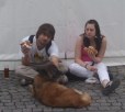 biodiversité avec döner ou gyros Elle fait son sms phone et le chien fait son repos par terre