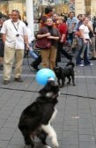 Le spectacle avec le chien bon joueur au ballon bleu il a attiré l'attention de la foule et le public du samedi. le chien professionnel qui joue au balon avec tout le monde ! >>>...