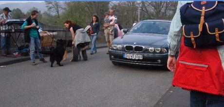 les chauffeurs en allemagne ont une patience de s'attendre un peu avec respect pour les plaisirs des chiens