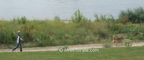 Report Paradis des chiens sur le Rhin Allemagne et Europe, Galérie Photos emotion culture sociale famille. Promenade d'une femme sur le rhin en compagnie d'un chien émotion pour les chiens ><....