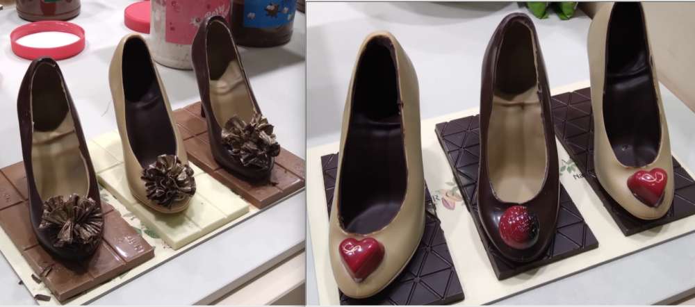 Les chocolatiers avec de design arrivent dans les concours et les productions de pouvoir produire le chocolat sous formes des escarpes féminines comme sont belles ces chaussures