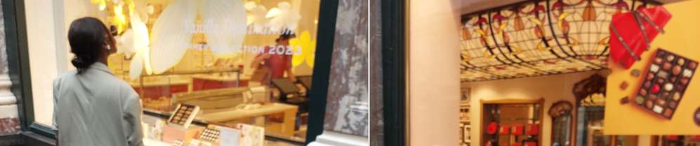 Quand je passe à Bruxelles aux Galéries royales je regarde les nouveautés et tendances du chocolat et pralinés aussi macarons des plus fameux producteurs du chocolat et pralinés parfois j'achète des coffrets pour ma femme et mes amis