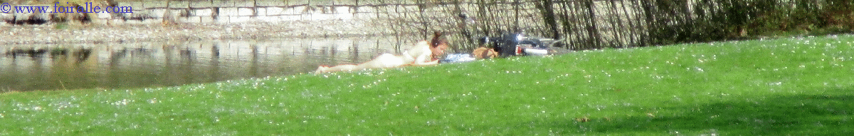 Printemps premier jour du soleil dont ses rayons caressent le corps d'une beauté féminine. Le soleil qui rayonne sur tout le monde nature et humaine, aussi qui peut caresser les beaux corps étendus sur les gazons |