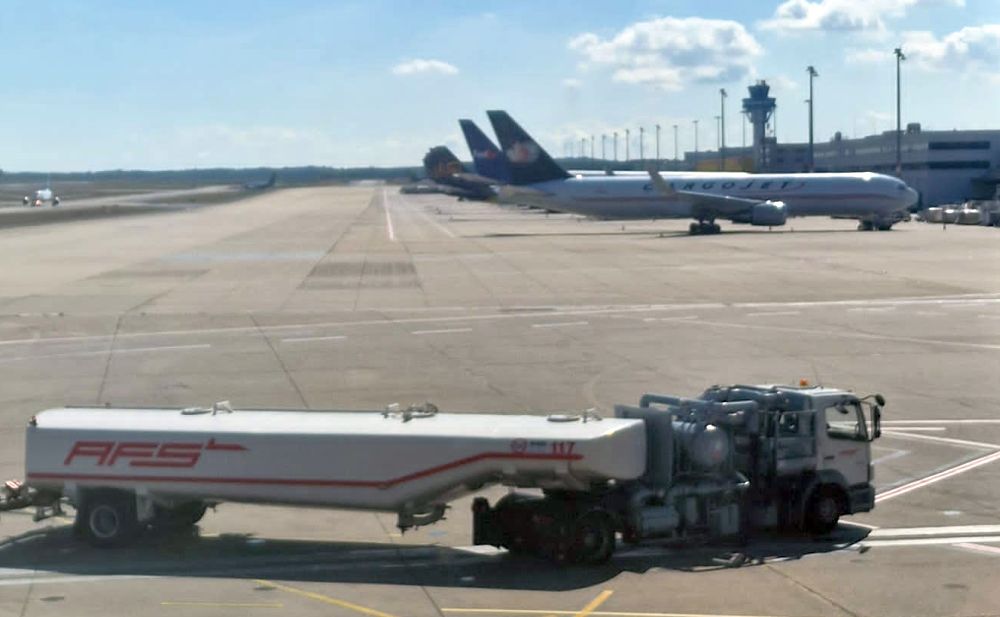 Dans les aéroports du monde entier, il y a des infrastructures logistiques bien établies pour le révitaillement et la distribution de korésène très vite aux avions. Pour permettre aux avions de voler d'un pays ou continent à l'autre, ils ont besoin de énergie combustible comme le kérosène qui est le carburant pour des avions civils et militaures ainsi que les hélicoptères à turbines. Ces avions ont des moteurs puissants à réacteur (turboréacteurs et turbopropulseurs), ils ont besoin d'un caburant poru avoir une énergie de décoller et d'attérir aussi comme les avions de longs courriers qui vont à plus de 18000 km de distance. Mais le kérosène comme tout carburant fossile, il libère du dioxyde de carbone (CO₂) lors de son l'extraction des gisements terre et mer et puis le raffinage du pétrole dans les raffineries jusqu'à la combustion par terre, décollage et attérissage ainsi que le voyage avec haute altitude tout en faisant des émissions des oxydes d’azote (NOx) ce qui contribuera en conséquence sur le réchauffement climatique.