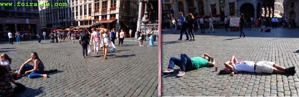 Bon le chaud tropical à Bruxelles à pousser certains touristes à s'étendus sur les pierres du grand place ou des autres filles à s'accoupi d'une manière romantique et conviviale