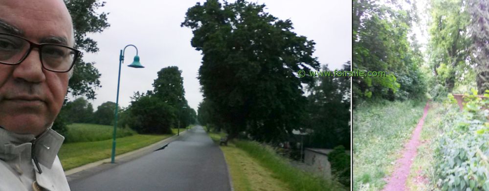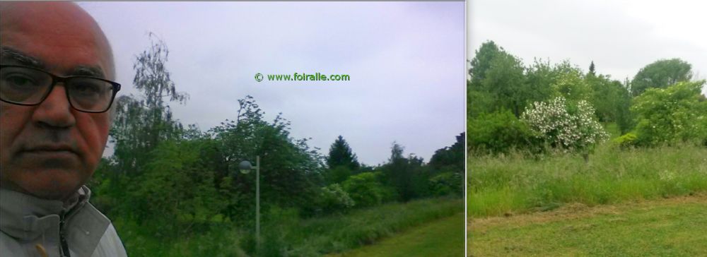 Météo Pluie avec froid aucun signe de trace du soleil, les deux routes de promeneurs sont vides des gens sur les vélos qui vont parfois à vitesse de Fromula 1 ou les mamans ou grands parents qui tirent poussettes des bébés et les petits vélos des enfants ou aussi les promeneurs à pieds aussi des refugiés qui venaient de l'Orient tourmenté.