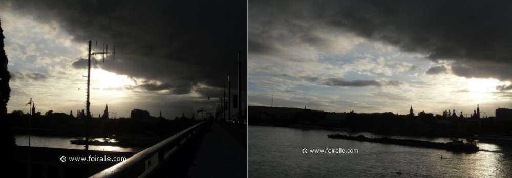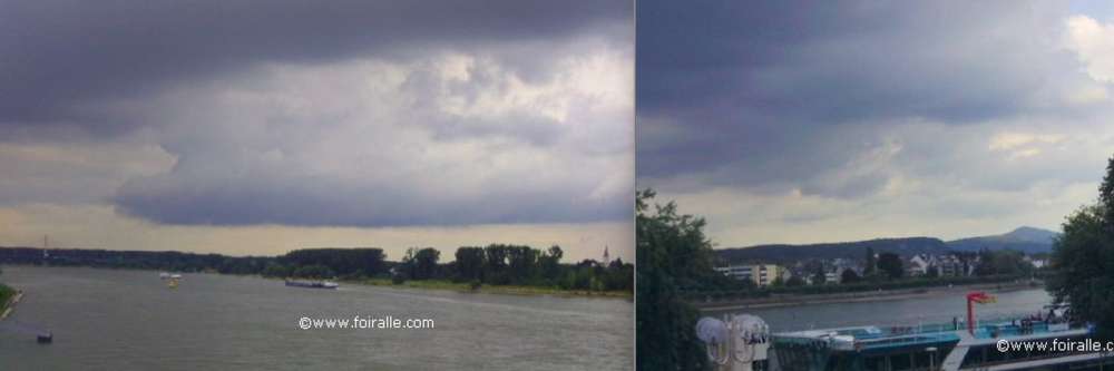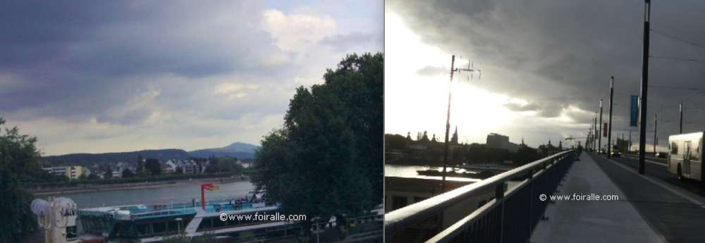 À l'horizon les nuages obscures et noires qui s'avancent vers mois et puis en quelques secondes tout en traversant le pont de Kennedy Brücke entre Beuel et Bonn