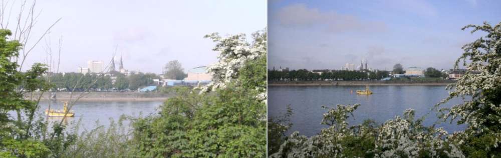 Ce qui m'a attiré l'attention en plus, ce que la beauté de ses arbres fleuris, et les eaux du Rhin qui coulent en douceur, une cheminée d'une usine á Bonn qui fait dégager des grands et longs fumés derriére les tours de l'Église Dr El-Lakkis