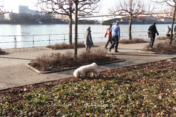 Les déchets des chiens sur le boulevard du Rin - Rheinaue à Bonn Beuel l'autre côté du Rhin beaucoup des excréments de chiens de petits moyens et grands calibres