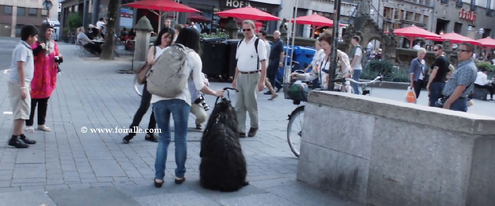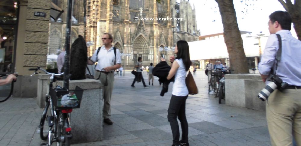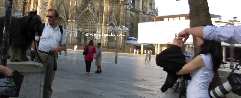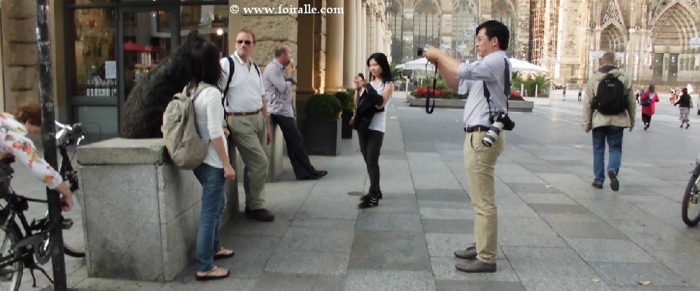 Oh la la ce Monsieur combien était patient avec la tenacité et l'insistance des femmes chinoises parout où je les voie dans les villes européens leurs émotions ne se cachent plus Milan, Roime, Paris omme ici à Cologne. J ene sais pas si Monsieur avec son chien s'il est colonais allemand ou européen qui faisait une balade dans le centre de Cologne comme moi avec ma valise aprés le salon de Sopga-gafa je ne sais pas . Là ca commenc eun sorte de cameras photos shooting camera ce qui m'a poussé á faire des photos. Photographie et être photographié © Textes et Photos FOIRALLE