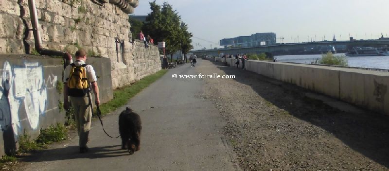 de l'hotel á quelques pas de la cathédrale de Cologne Il était ici sur le Rhin á se promener avec son chien sur la rive droite du Rhin, il ne savait pas aprés 20 minutes qu'est-ce qu'il va passer á lui avec lui et son chien