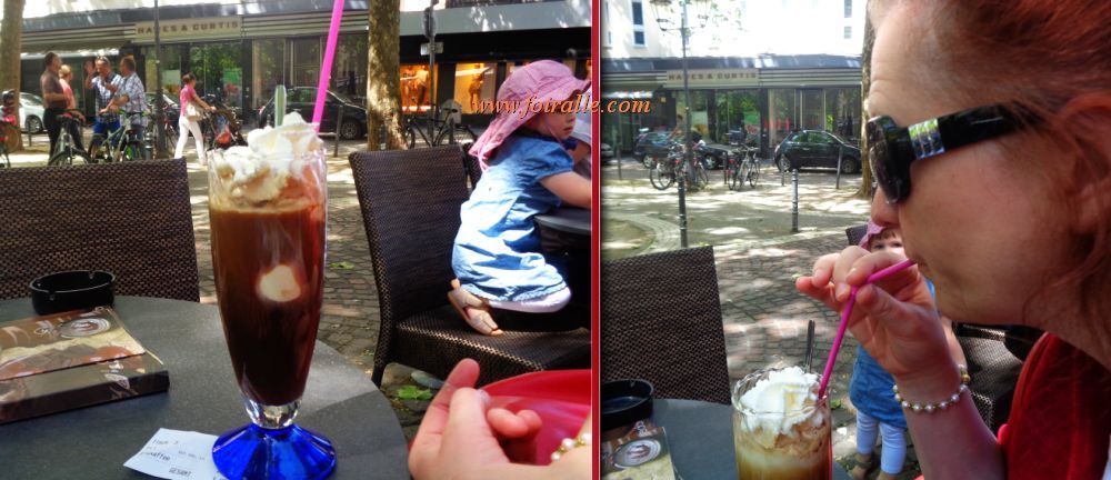 Elle observe ma femme dans ces gestes et mouvements, ses paroles et ce qu'elle est en train de manger ou de boire (glace au café) dans un café trottoir à Cologne. Elle confirme son caractère et ses envies malgré la volonté de ses péres de s'assoier à la table et sur une chaise. Elle se rébelle et cherche le contact avec nous à travers les yeux. Elle était une fascination, j'ai échangé quelque smots avec ses parents tout en lui donnant des conseils sur la psychologie de sa fille et le développement de sa personnalité à travers l'imposition de son caractère à travers sa voix de contestation, de mouvements, mais j'ai découvert son fort caractère social et il faut canaliser les énérgies des enfants d'une manière et non pas créér un mur ou obstacle qui écrase leurs volontés et l'expressions de leurs désirs pour croissance normale et équilibrée. La bonne éducation intelligente avec amour favorise le développement de chaque enfant Dr El-Lakkis © Photos FOIRALLE