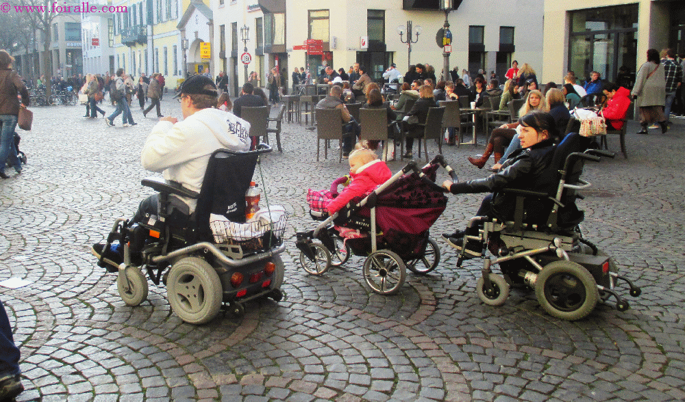 Là voilà, une famille qui se proméne en toute normalité dans la ville avec un beau temps, bien chaleureux jusqu'à 18° en plus sous le soleil. On ets en hiver mais la météo avec le beau temps a permis de découvrir des belles choses dans la vie malgré les choses négatives, crises, maladies, violences, mauaivas temps et caractère. Mais la chose la plus belle ce que cette belle famille avec handicap physique ou invalides qui se proméne normalement avec un petit bébé sur une poussette, tiré par sa mère. Comment la haute technologie pour les handicapés pourrait contribuer de donner une chance á de spersonnes handicapés physiquement de pourvoir vivre et exercer leur vie en toute normalité. ce couple je le croise souvent á Cologne, dans le train et aussi à Bonn qui sont amoureux. tous les deux hommes et femmes malgré leur handicap et nous vivons dans une société dont la mort et la maladie n'ont pas une place dans la société qui est en mouvement et dynamique. Les corps devront être parfaits, nomaux sans handicap et sans maladie. Je comprends ca de mes propres expériences depuis 1992 jusquàuhourd'hui le 08.03.2014 (journée de la Fête de la Femme dans le monde "Buona mimosa) ce qui m'a porté vers le pays du Rhin c'est la maladie de ma femme... Oui les handicapés ont le droit de vivre leur vie normale comme les autres. Combien des couples et des familles malgré la bonne santé physique et nromale qui sont désintégrées pour des maladies psycholgiques, mentales ou égoisme et carriéisme vivent une vie sans amour et sans normalité Dr El-Lakkis © Photos FOIRALLE
