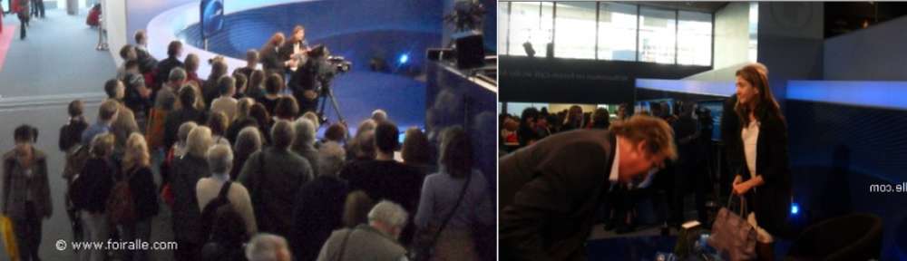Quel bonheur de ce petit Meeting-rencontre avec Ingrid Betancourt (ex candidate à la présidence de la Colombie et Sénatrice qui était l'ex otage des FARCS guérillas colombiens dont le monde entier s'en occupés beaucoup les médias en Allemagne je ne me rappelle pas qu'on a pu donner importance comme en France et ailleurs. ppui, tout ça passe trop vite mais avec des choses très profondes d'aprés une petit et l'échange quelques mots et un interview manquée, elle était d'accord, mais les deux allemandes en sa compagnie de ARD ou de Buchmesse, bien sûr toujours les allemands-germains se cachent derrière ces mêmes paroles de la même litanie des face aux étrangers dans le monde des salons et conférences : "keine Zeit, nie ist immöglic etc pas de temps, ce n'est pas possible" quand il s'agit d'un journaliste-éditeur allemand avec un nom et visage étrangers. Je les ai appris par coeur comme un lexicon et dictionnaire don le racisme (mentalité de provincialisme) en Allemagne qui se cache et se métamorphose derrière les justifications de nature de discipline, organisation, loi et protocole ça au niveau des gens qui ne portent pas les bottes et les vêtements de néo-nazis, mais des gens civilisées qui portent des gravattes, coiffures, mode fashion des jupes ou tailleurs.