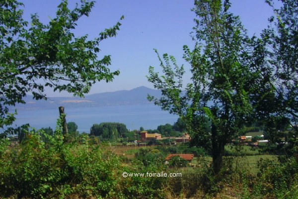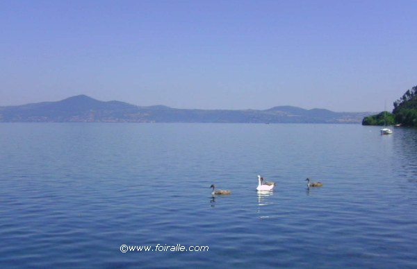 Les collines boisées qui entourent le Lac du Bracciano, pleine des arbres de pins et cypres, aussi des oliviers lui donne un panoprama romantique et merveilleux.