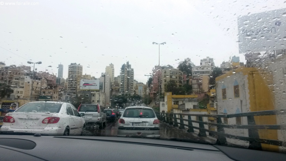 Les rues de Beyrouth pleine de voiture en embouteuillage quand il pleut