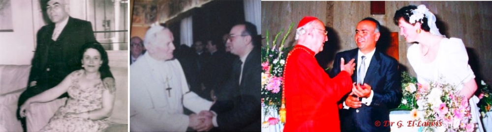 Une Première au Liban et dans son histoire un cardinal Gagnon de la Curie romaine en contact direct dans une rencontre conviviale et directe avec les familles chrétiennes libanaises (El-Lakkis, Mourad, Chicri, Nahal) mariage Dr El-lakkis >>>>> Les grandes fêtes des chrétiens maronites au Liban la Fête de Noël et des Pâques. De l'album Photos Familles chrétiennes libanaises maronites en fête de Noël >>... * Liban Noël sous la guerre, malgré la guerre je me sentais avec la fête du Noël. L'attachement des familles chrétiennes maronites au Successeur du Saint Pierre surtout les papes ce n'est pas l'affaire unique et exclusif du clergé maronite, mais aussi les familles chrétiennes ont le droit à la rencontre, l'éducation à la formation aux universités et instituts du Vatican. La premiére institution qui m'a transmis l'attachement historique au pape à l'Église de Rome et aux papes au Saint-Siège, c'est ma famille- parents qui est la première cellue base de la société et de l'église au Liban. famille Tanios et Généviève El-Lakkis ont éduqué leurs 8 enfants aux valeurs morales humaines et chrétiennes voire des valeurs universelles. L'éducation à la paix, à une culture conviviale et pacifique, au respect des autres personnes, cultures et religions, à la mondanété, au sens de l'amitié. Fidélité et loyauté aux principes et aux institutions (État et Église), en dialogue avec les autres jusqu'à que le commissaire à la police à Saida et Beyrouth a changé le nom de famille Boutros Morcos sur El-Lakkis tout une vision, intuition de la préfiguration du Liban avec son plurlaisme des communautés religieuses chrétienne et musulmane. Ce nom est porté par des nombreuses familles chrétiennes et musulmanes (maronite, chiite, sunnite, grec melkite etc). Si mon père était un prêtre manqué, deux patriarches (Maouché et Khoraiche) ont voulu donner l'ordination présbitérale mais l'opposition d'un vicaire qui est devenu patriarche aprés les deux lui a refusé tout en donnant à l'ex paroissien de kfar Hatna (immigré commerçant recommandé de l'évêque maronite de Brésil) qui venait chaque jour pour apprendre (training) de mon père comment se fait la messe, comportement sur l'autel, la liturgie, les textes de la messe etc aussi la lecture de carshouni. mais mon père m'a demandé de jurer fidélité au pape Jean-Paul II et me voilá par miracle je me suis rencontré avec lui. il tenait á sa Sainteté personnelle te non pas sur le titre d'honneur. Aujourd'hui la donne est différente mais son fils suivant la bonne éducation fmailiale, les bons conseils et orientation. Voilà ce 7e fils de cette bienheureuse famille à qui je dit malgré les vicissitudes négatives vécues au Liban dans le village et les calomnies de certains clergés maronites contre une famille parmi les innocentes familles libanaises de la "majorité silencieuse" qui ont subi tort et le mal des autres. Dr El-Lakkis Liban Culture Société. Impressions ambiances libanaise Voyages visite tourisme, accueil amitie conviviale hôte gastronomie, interculturel mariage voyages famille Blog Maronite Europe >>..... Dr El-Lakkis ©