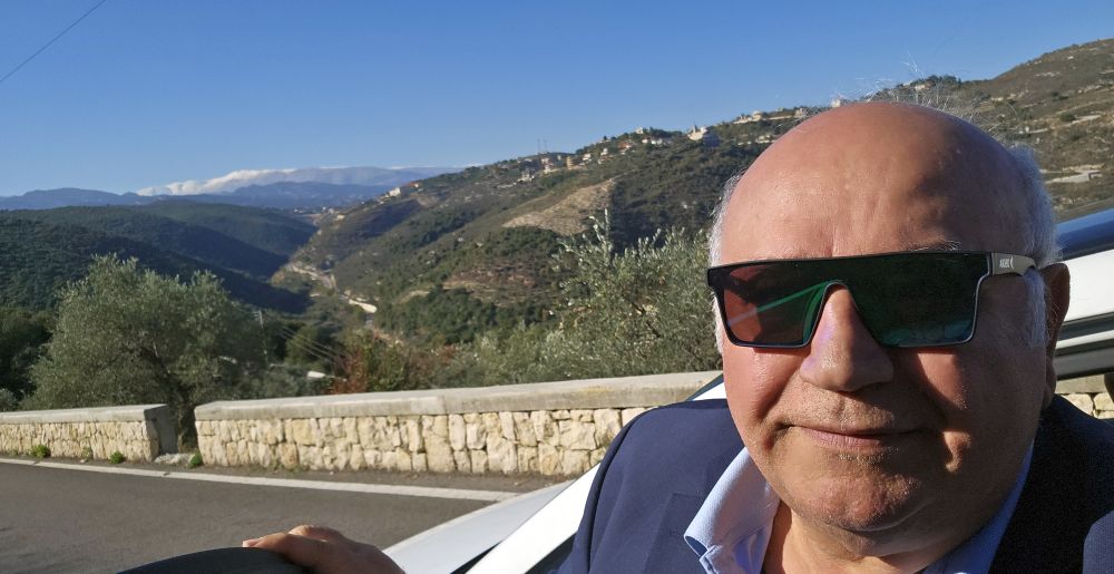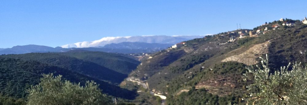 Liban vue panoramique de la neige 2025 vers les pics des sommets du Mont Makmel et Qornet Sauda en voiture de ma