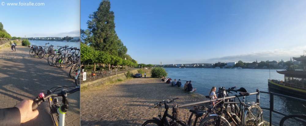romantiques de vivre sur le Rhin en promenade sur le vélo. J'étais vers le mois de juin 2023 vers 20h le soir à faire la promenade sur le vélo. Voilà le spectacle impressionnant du paysage avec des gens et le ciel . Dr. Gabriel El-Lakkis